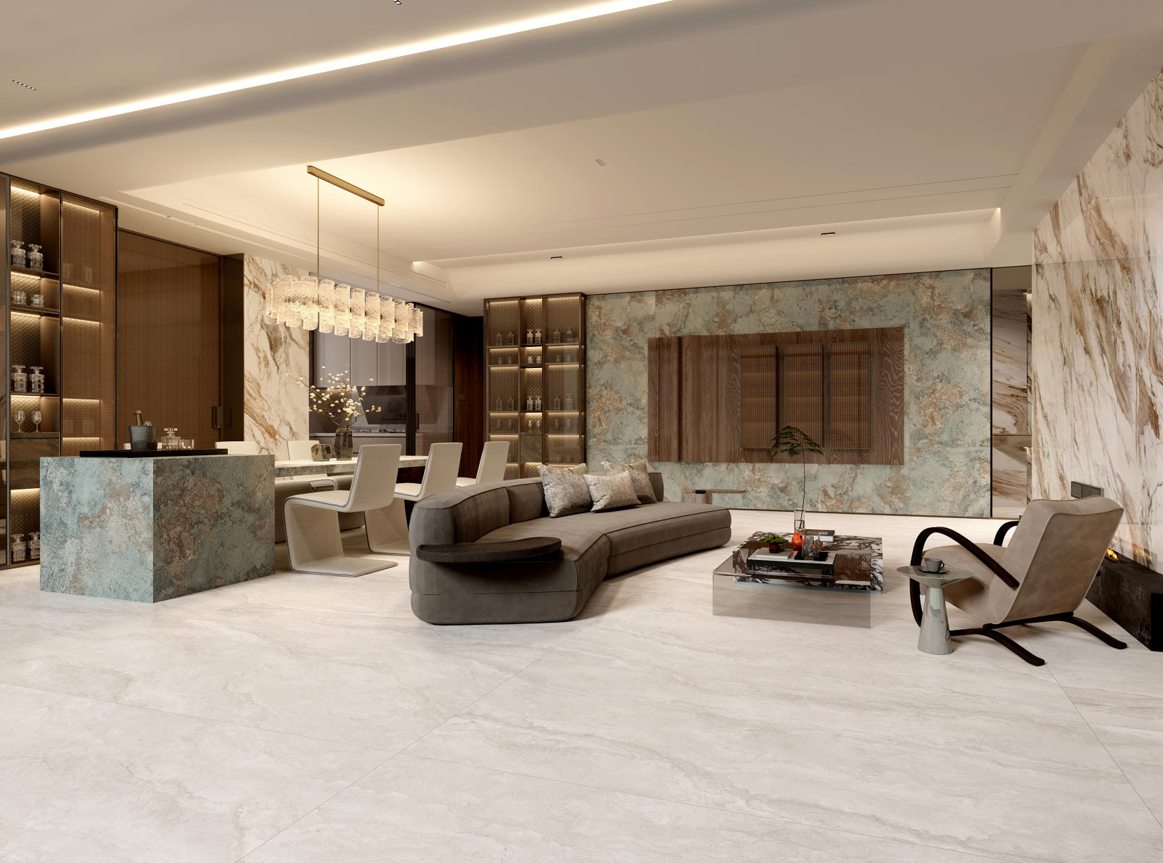 融合馬吉拉的時(shí)尚簡(jiǎn)約,如天然白洞石般的紋理交錯(cuò),為家居注入精致格調(diào),盡顯不凡品味與藝術(shù)氣息。