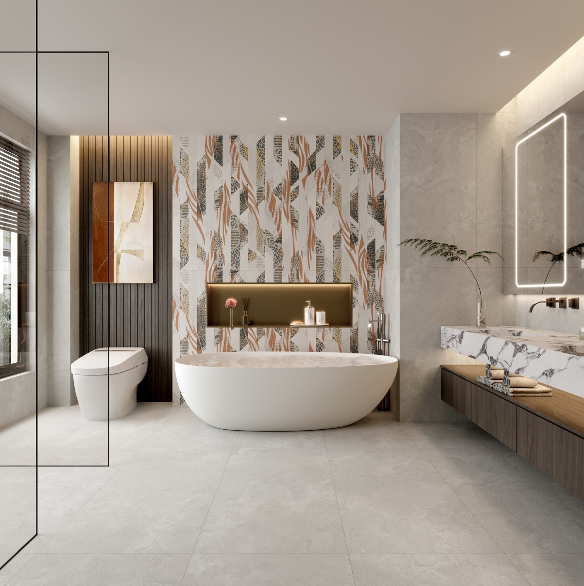 棕櫚樹、豹紋等代表著非洲的獨(dú)特印記,通過不規(guī)則的設(shè)計(jì)排列,將狂野與活力鐫刻在磚面上,盡享原生態(tài)的自由隨性、野性自然。