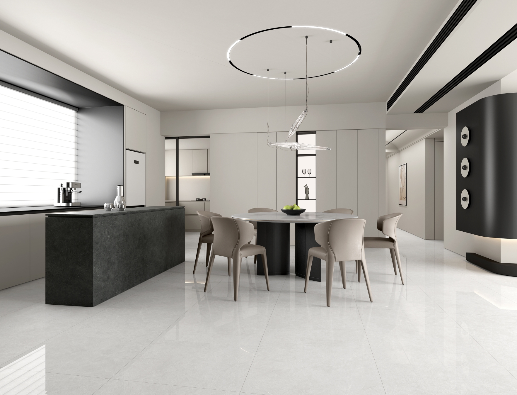 云絮飄動(dòng)似的微弱紋理,其間淺灰紋理若隱若現(xiàn),又如冬日山林雪徑,簡(jiǎn)約雅致,為空間注入清冷高級(jí)感,營(yíng)造寧?kù)o舒適的家居氛圍。