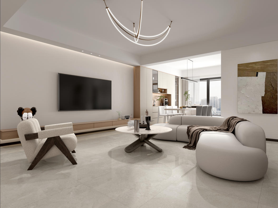 獨特時尚的米杏色調(diào),變幻莫測的漸變紋理流動,彷如歲月的雕琢,給空間帶來連貫、完整、延伸的無垠視界。