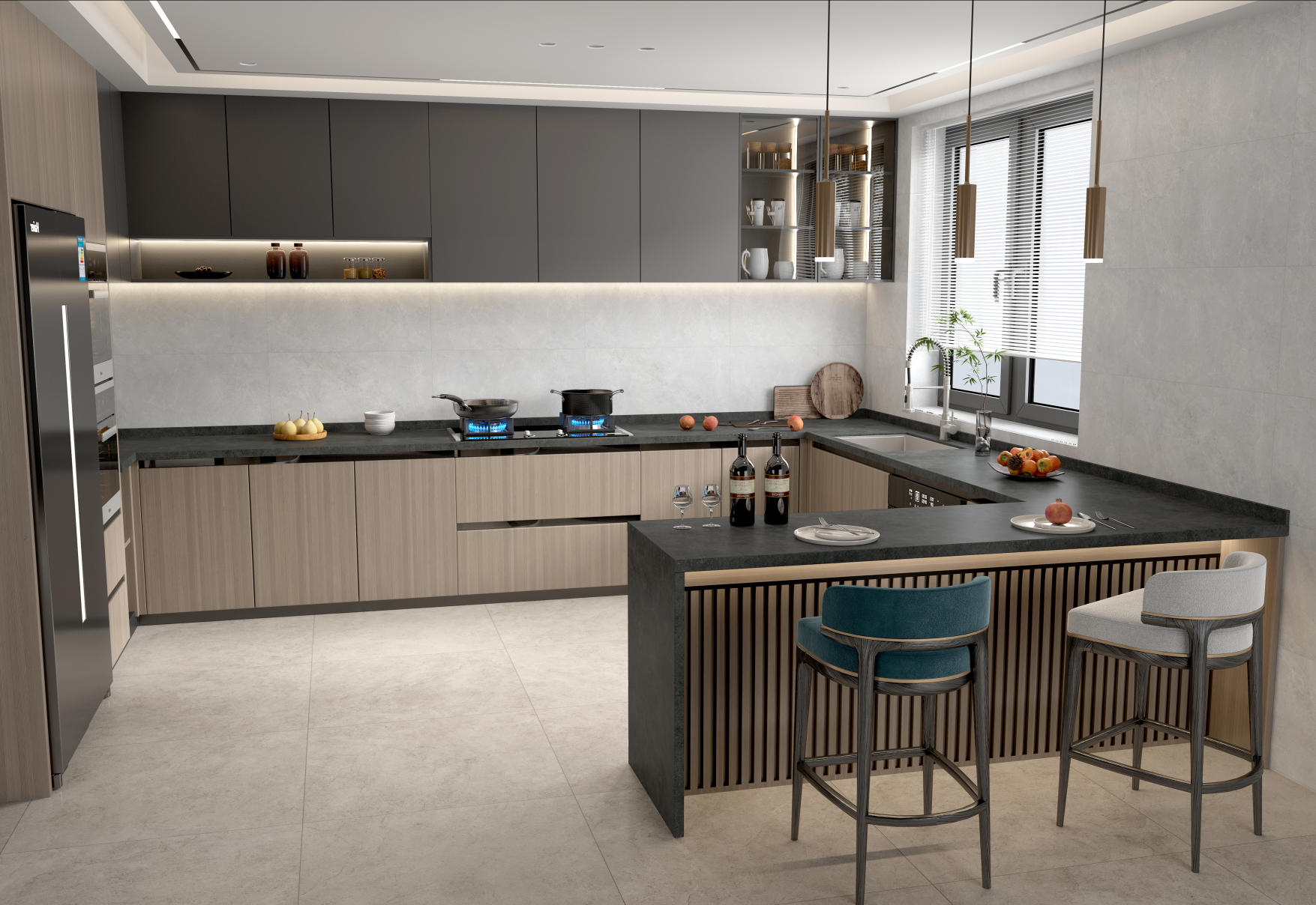 深海充滿神秘色彩,靈動活力的紋理變化莫測的,海蘭灰巧妙地將海洋元素與現(xiàn)代審美相結合。