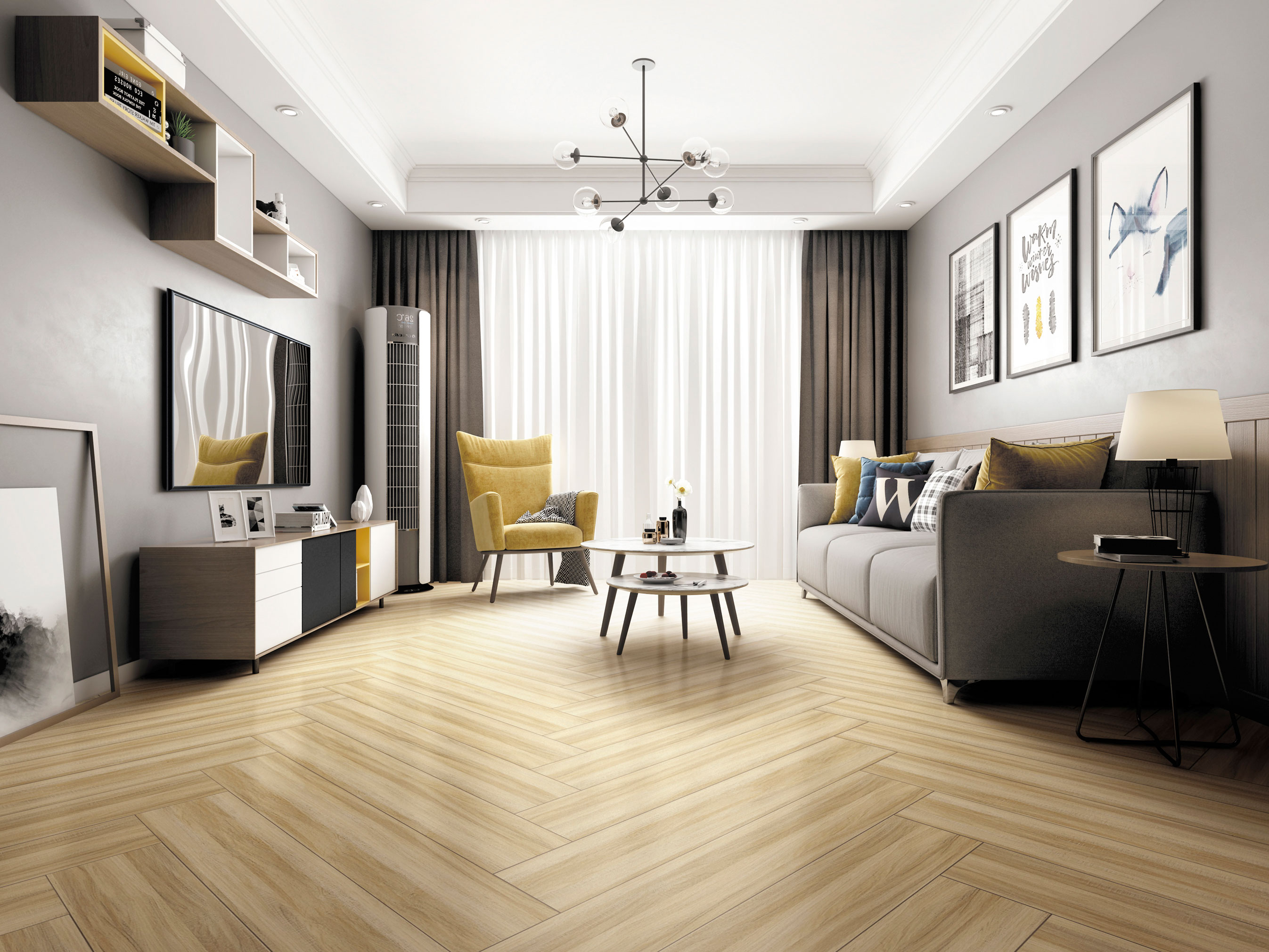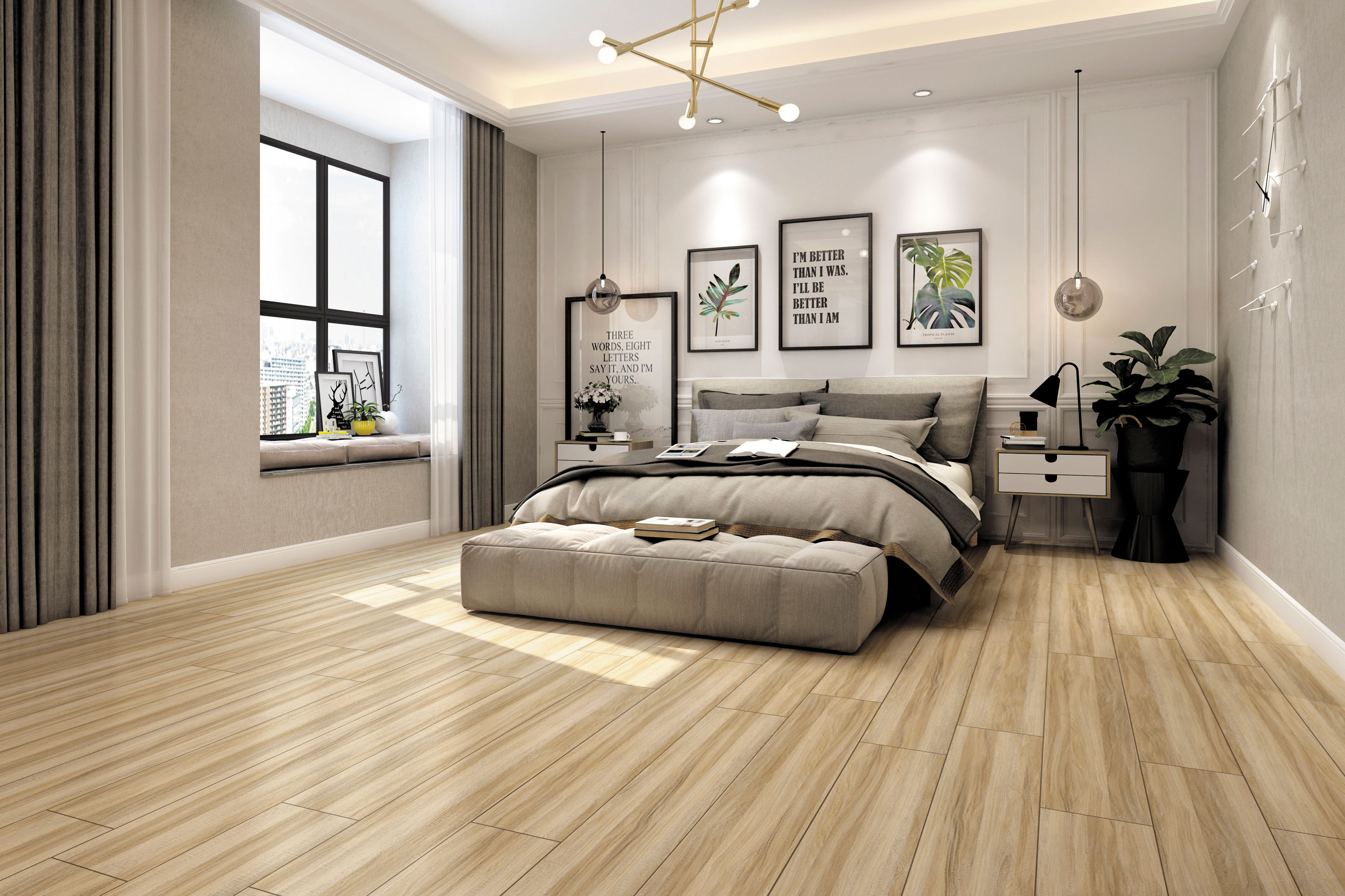 靈感源自北美珍貴樺木,直至交錯的波紋,顏色變化明顯,完美地再現(xiàn)了木材的紋路、質(zhì)感,淡雅的米色營造清新自然的感覺。