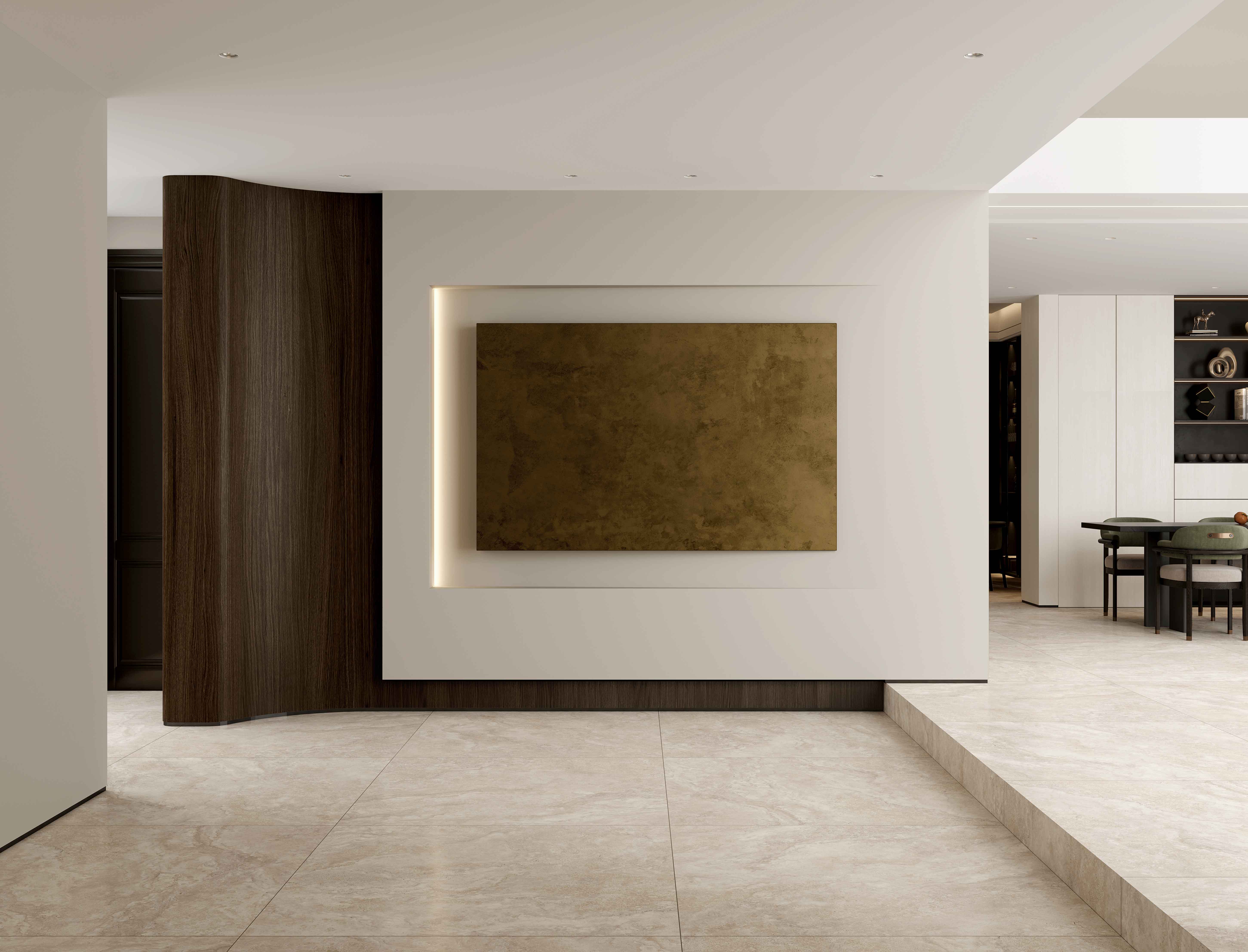 溯源億萬年前波特蘭島的自然美學(xué)與歐洲建筑經(jīng)典美學(xué),復(fù)刻經(jīng)典洞石獨有的孔洞肌理,或張揚、或粗狂、或熱情、或冷酷融合水泥斑駁的肌理質(zhì)感,打造出一種極具現(xiàn)代感和飽滿質(zhì)感的空間效果,讓人有回歸本質(zhì)與自然的感覺。