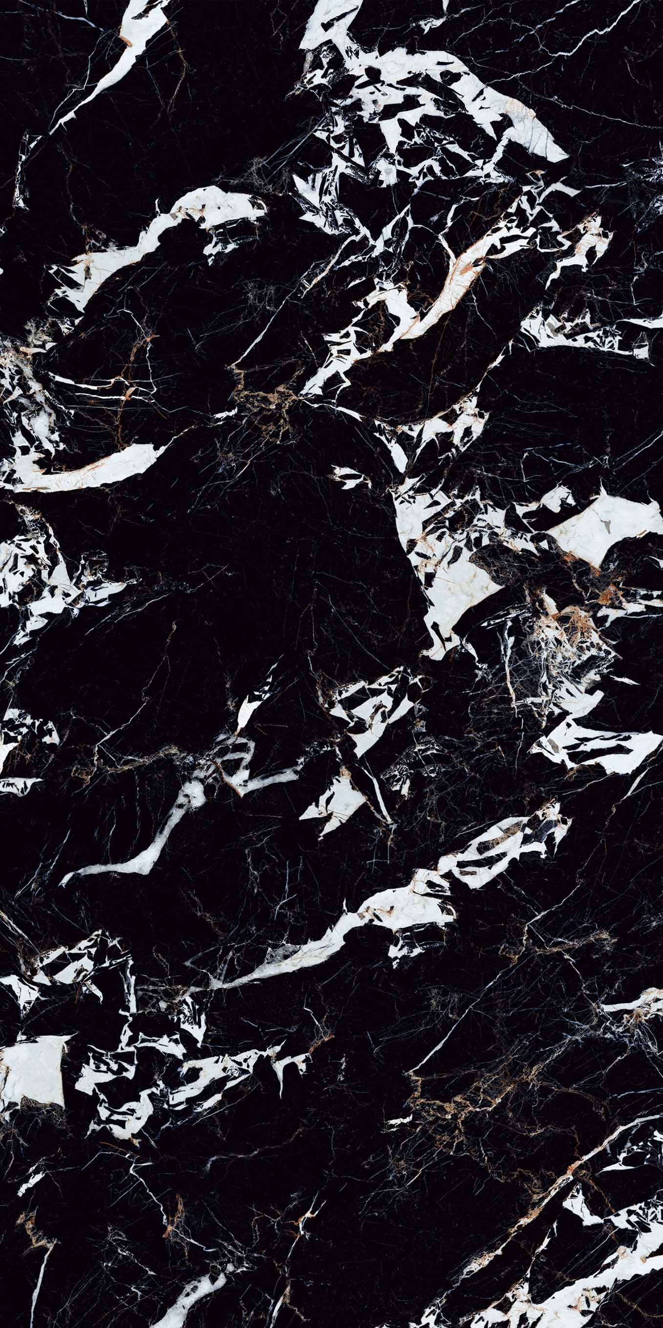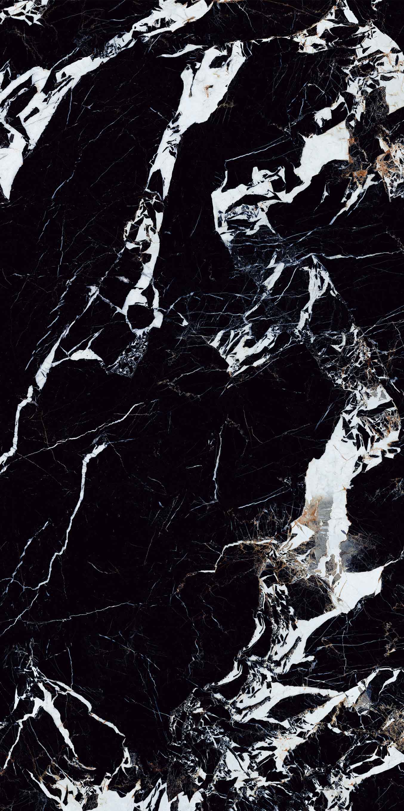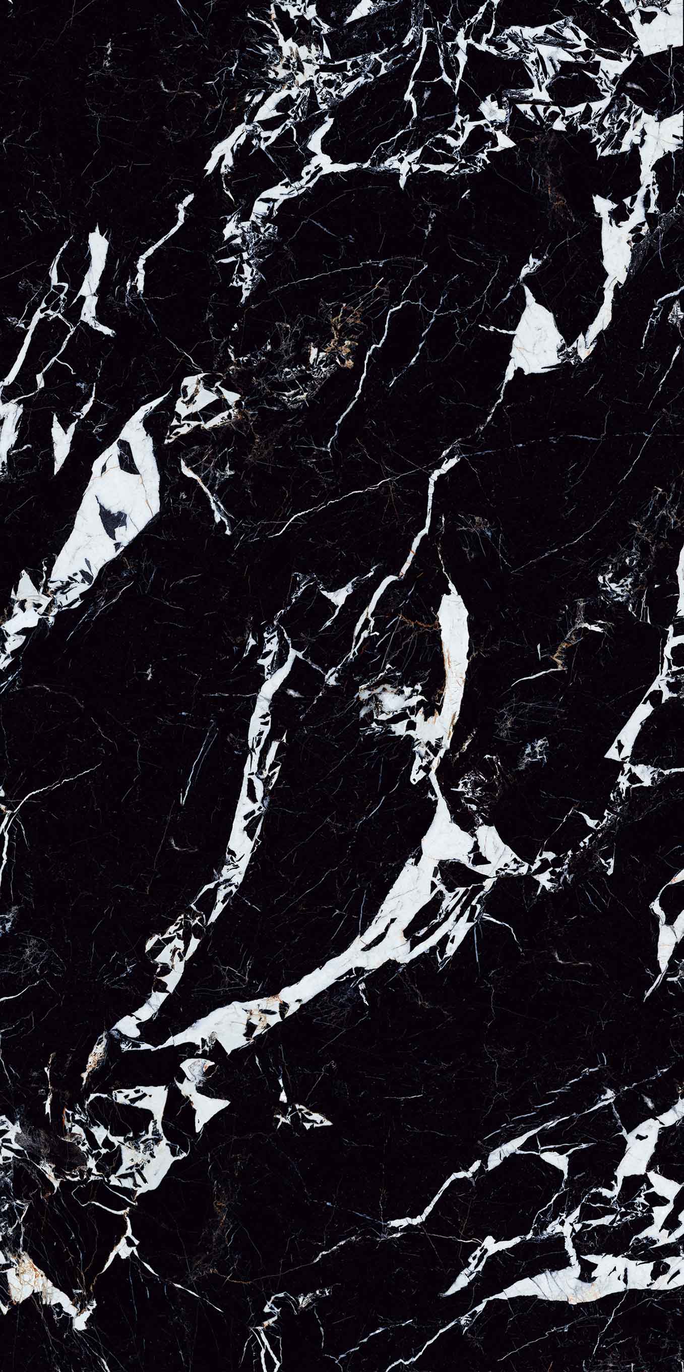 黑的濃烈,白的純粹,肆意鎏金靈動灑脫,一眼難忘。似黑色沙灘上翻滾的浪花,又似暗夜凌冽的阿爾勒閃電幻化出時尚經(jīng)典,構(gòu)成奇妙的視覺吸引力。整體鋪貼增加空間的動感,形成視覺的延伸效果。